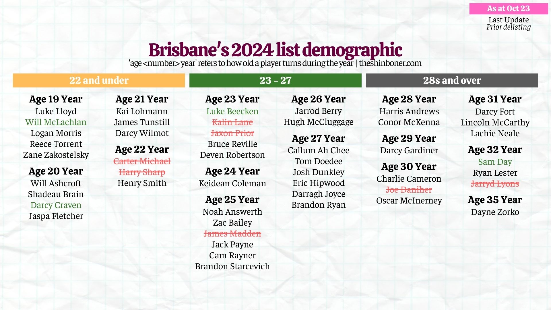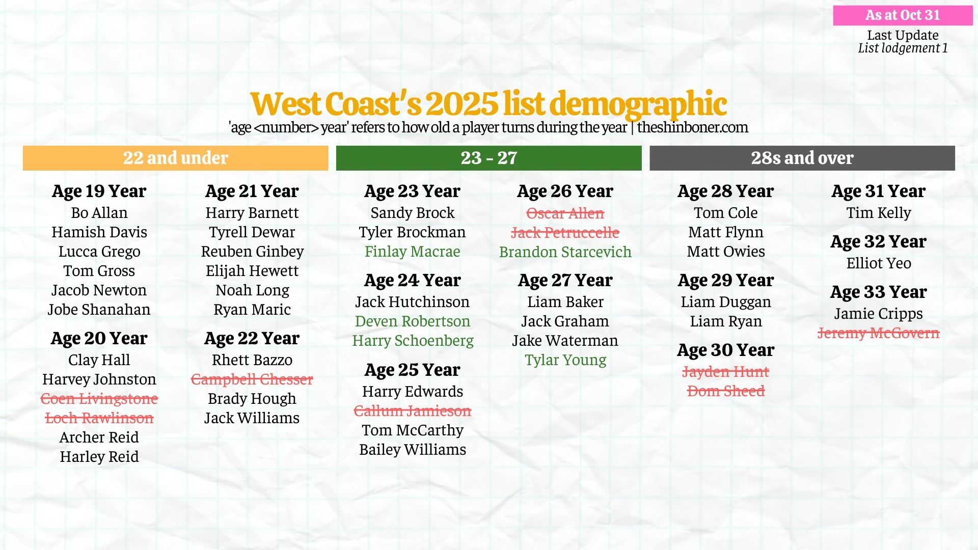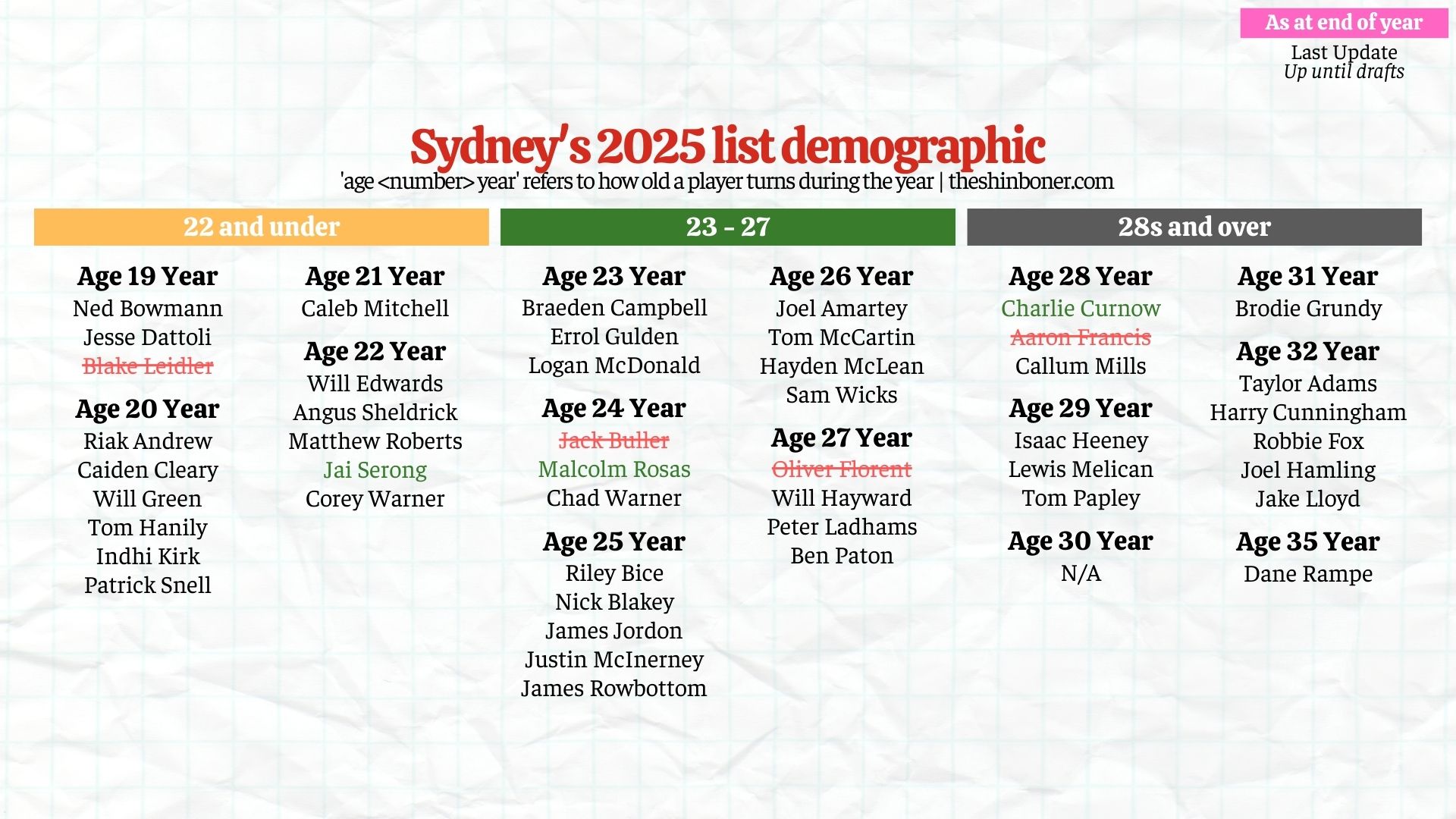 Here is each team’s list demographic for 2026 as it stands, to be updated throughout the year as changes are announced.