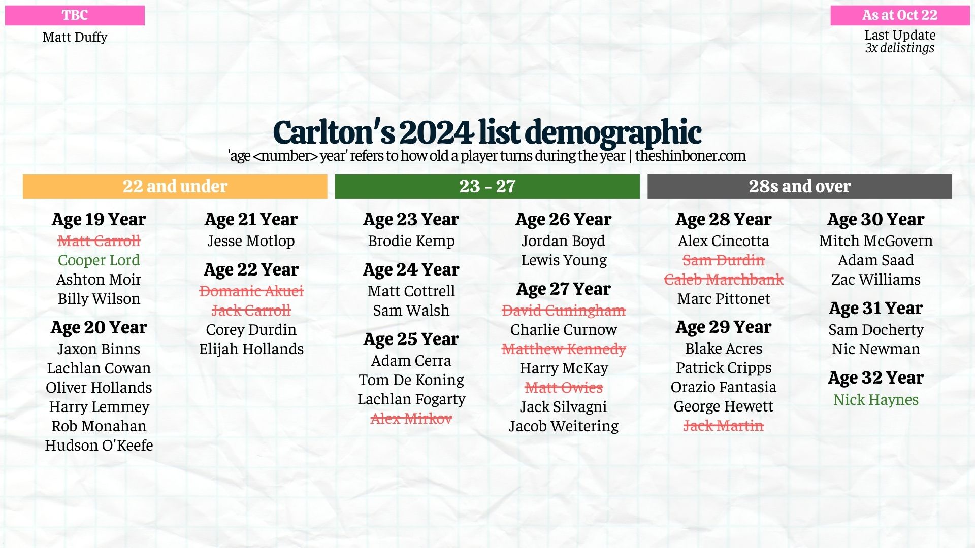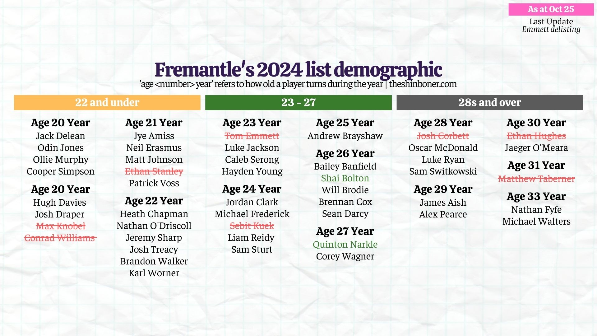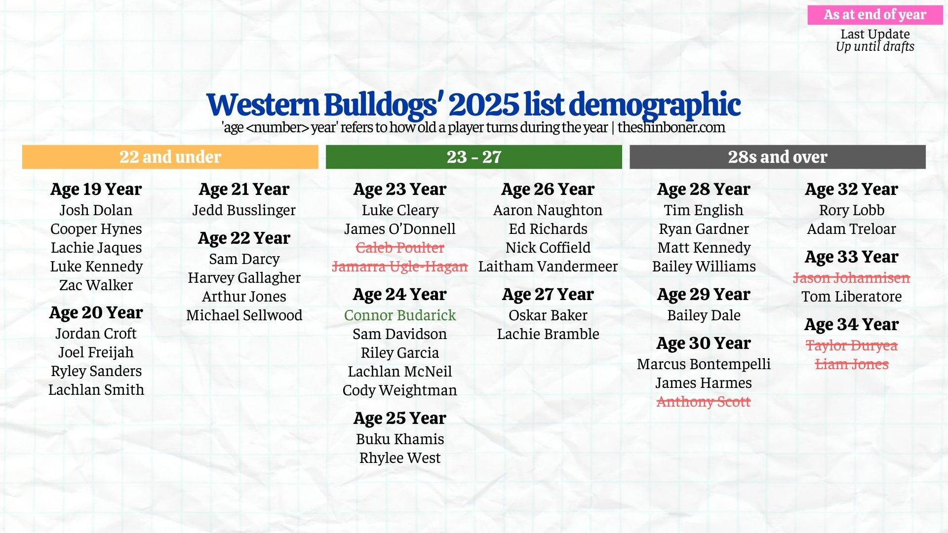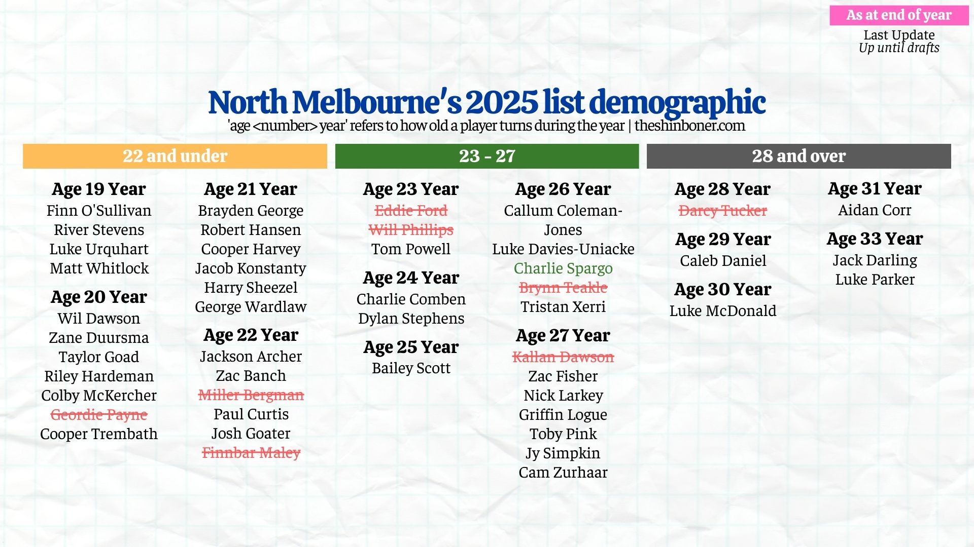 Here is each team’s list demographic for 2026 as it stands, to be updated throughout the year as changes are announced.
